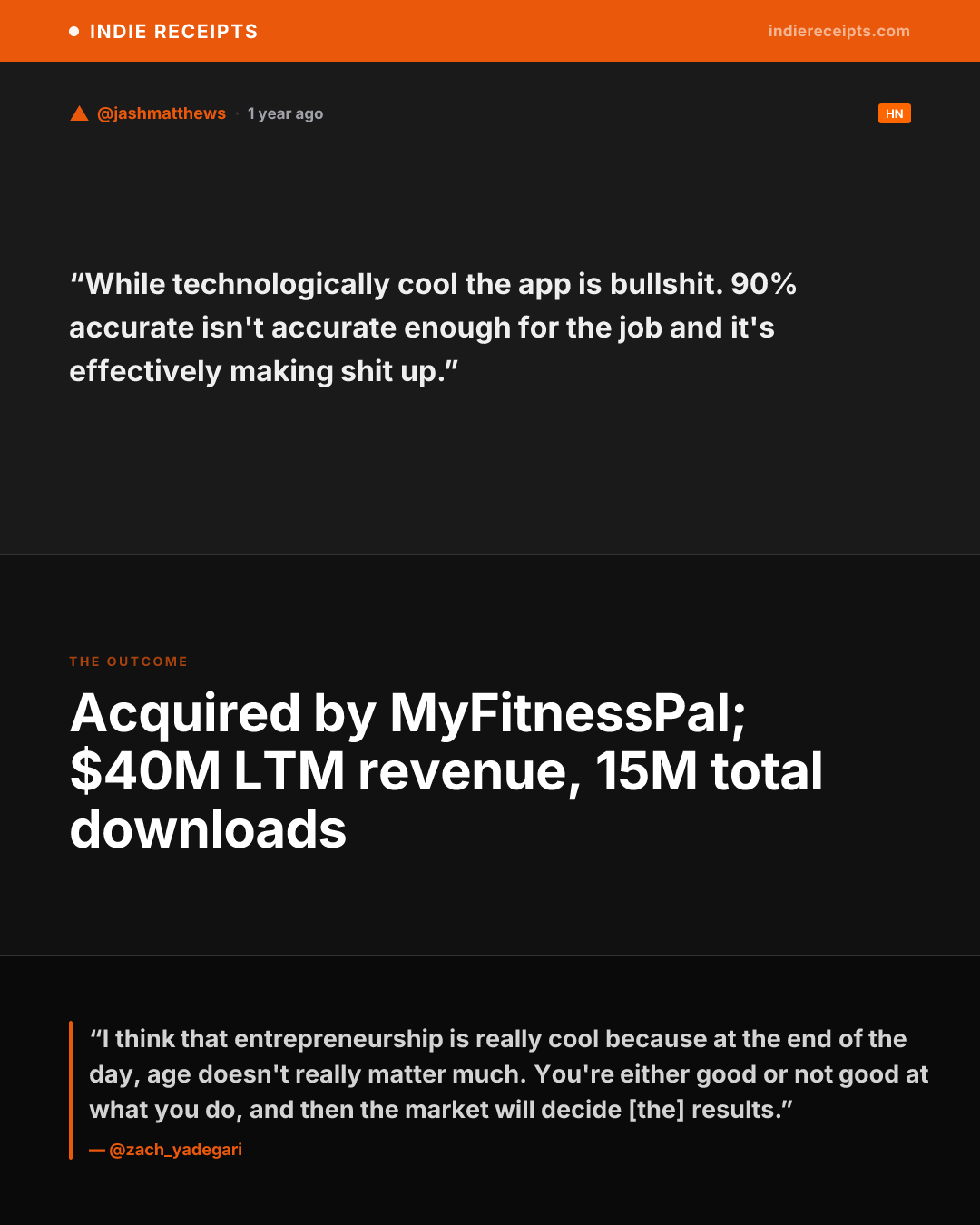 other Hacker News thread: engineers dismiss photo calorie tracking as 'technically impossible.' App continues growing.