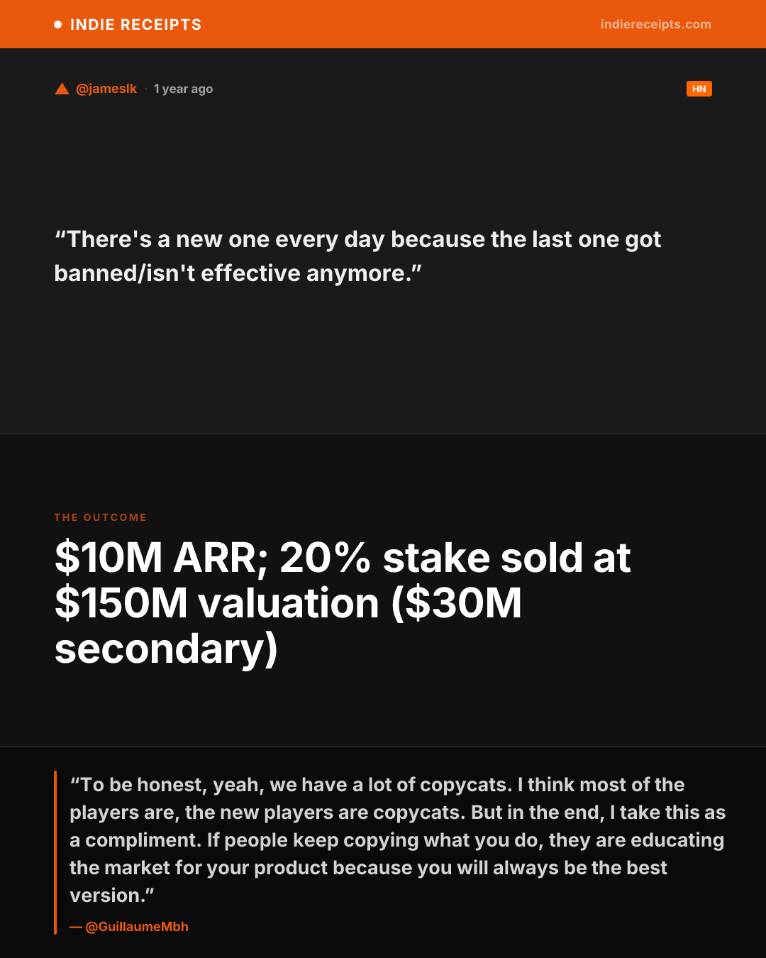 To be honest, yeah, we have a lot of copycats. I think most of the players are, the new players are copycats. But in the end, I take this as a compliment. If people keep copying what you do, they are educating the market for your product because you will always be the best version.